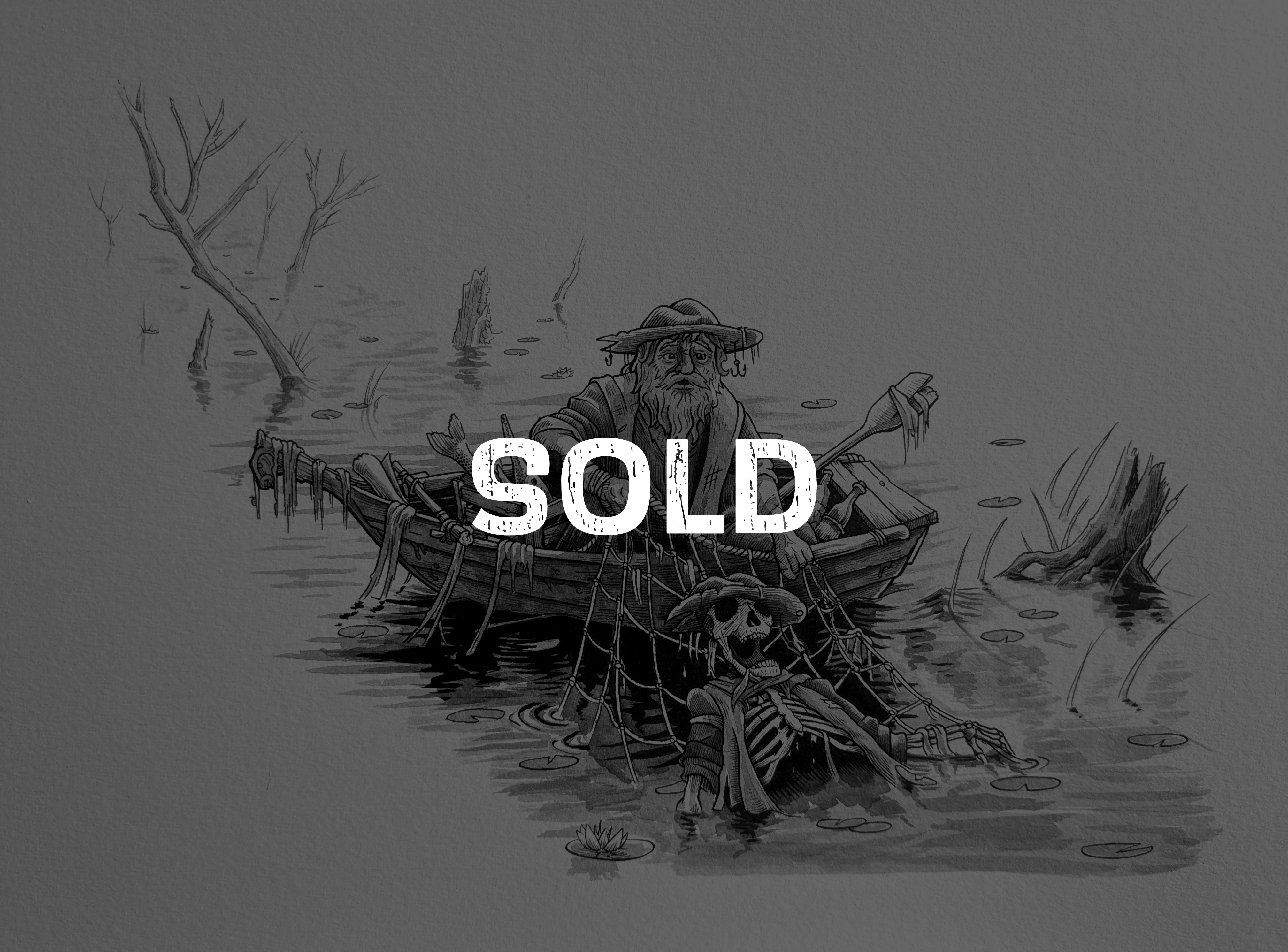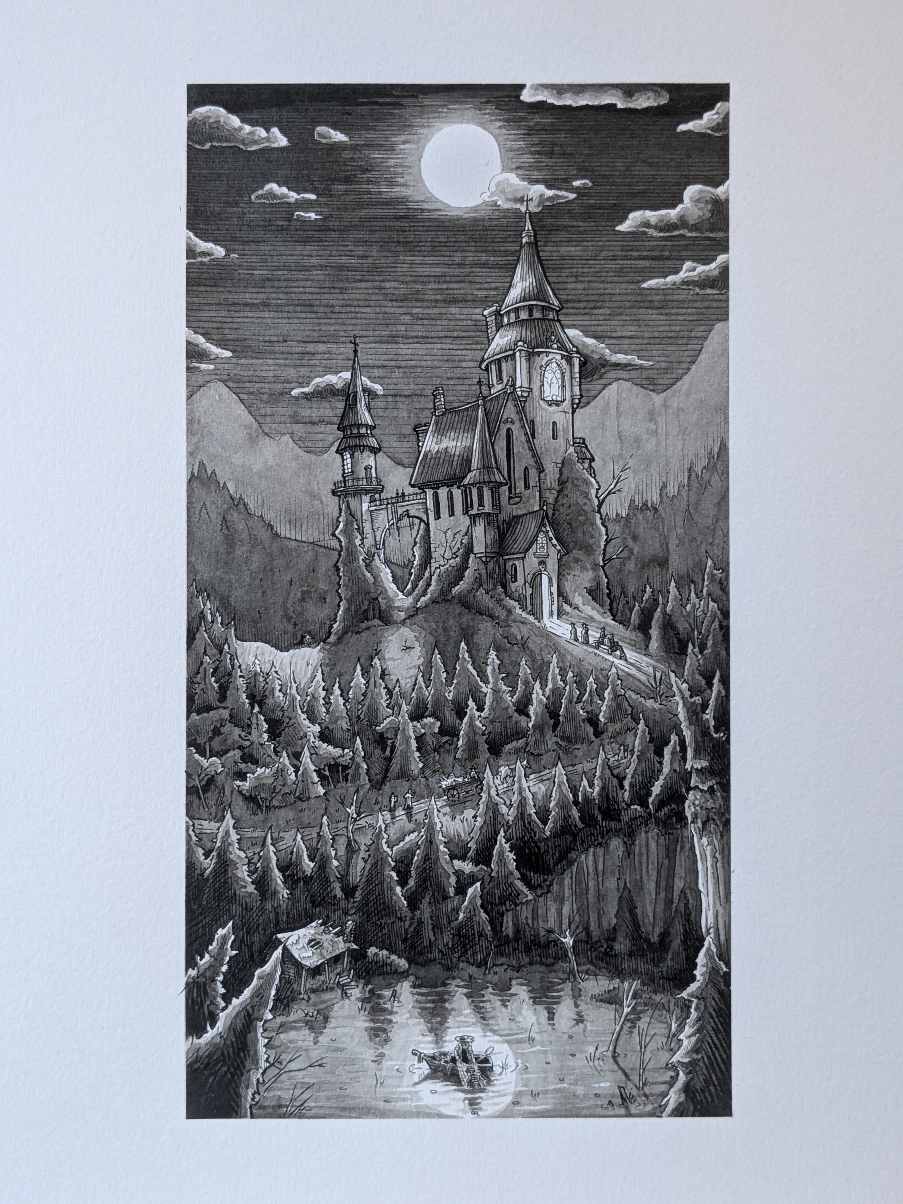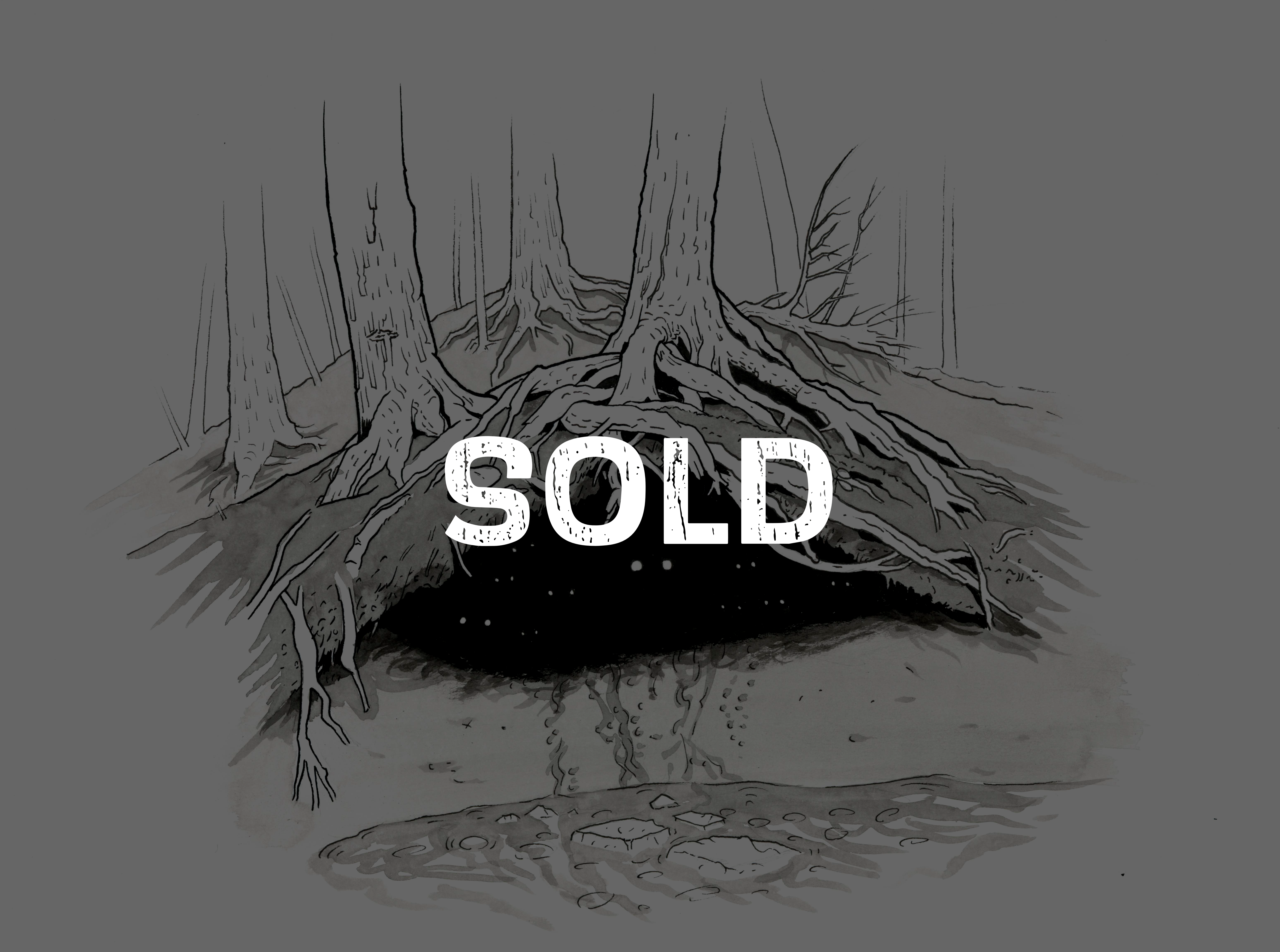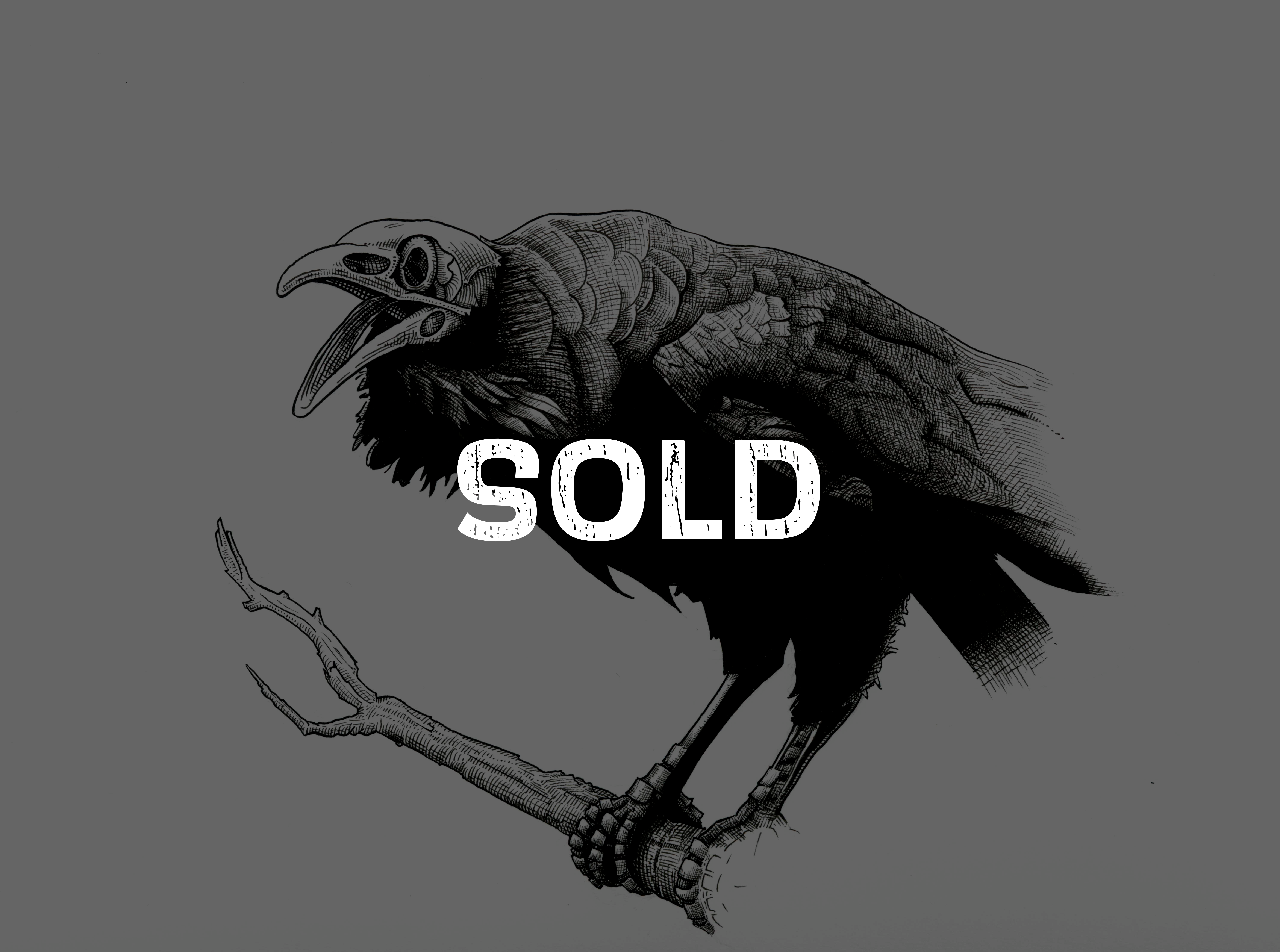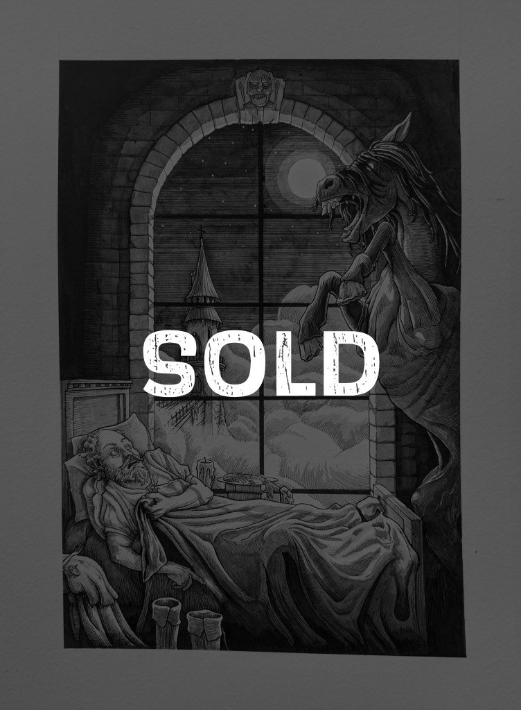 All ink originals drawn 2023 and later were drawn while I was wearing a cotton glove. Pre-2023 art may eventually stain from touching my oily hand – sorry!