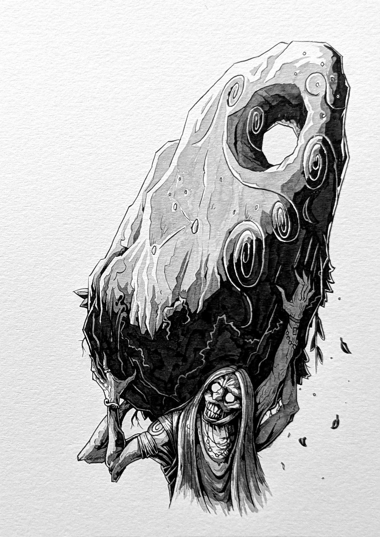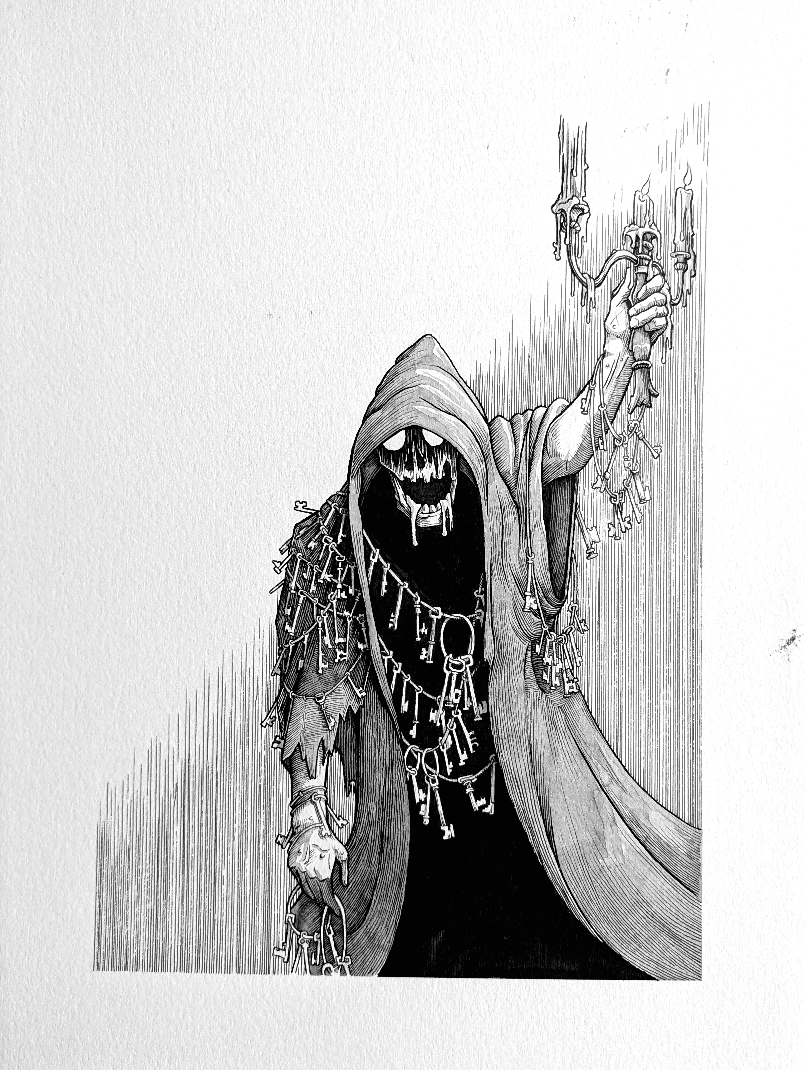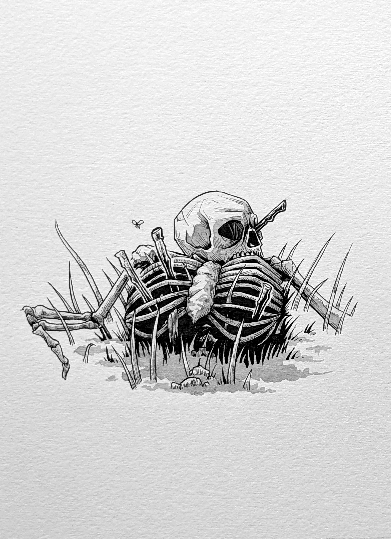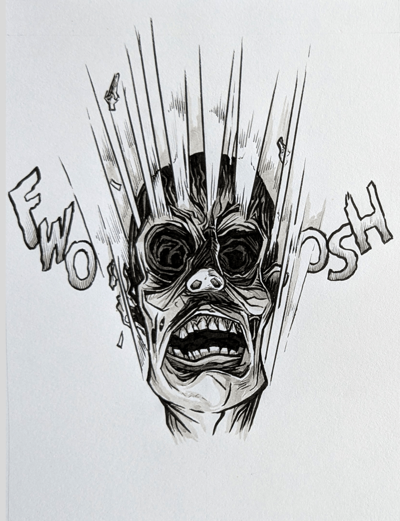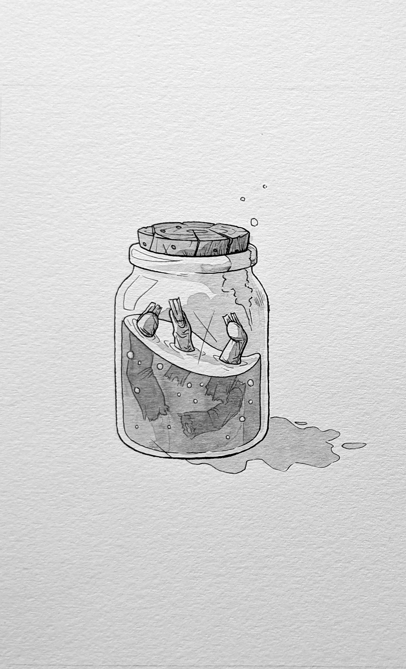 All ink originals drawn 2023 and later were drawn while I was wearing a cotton glove. Pre-2023 art may eventually stain from touching my oily hand – sorry!