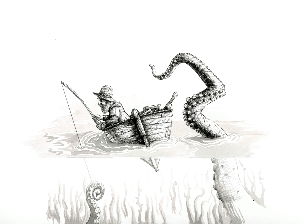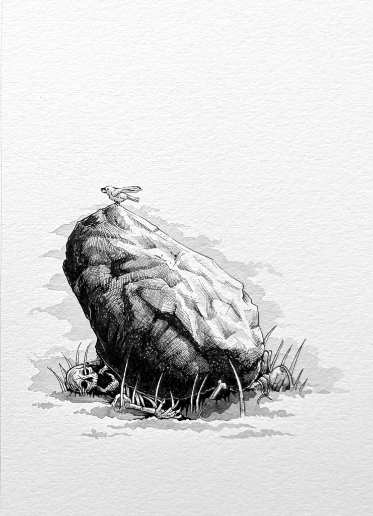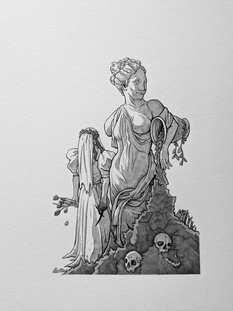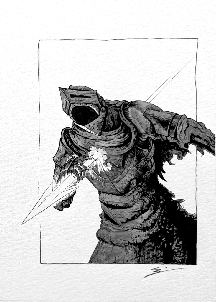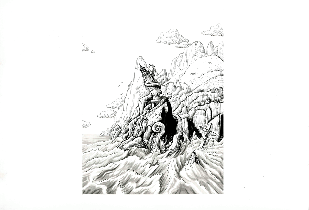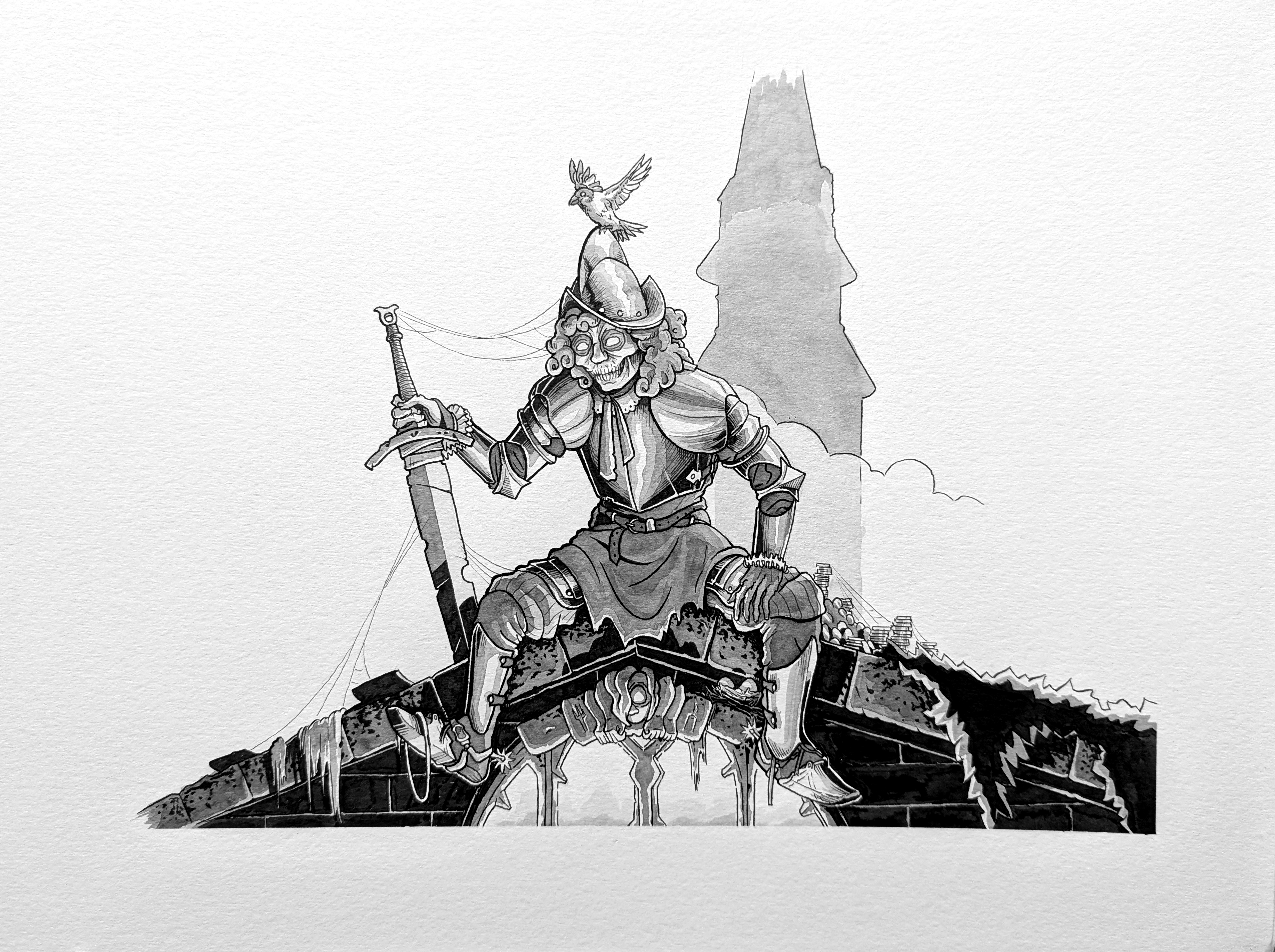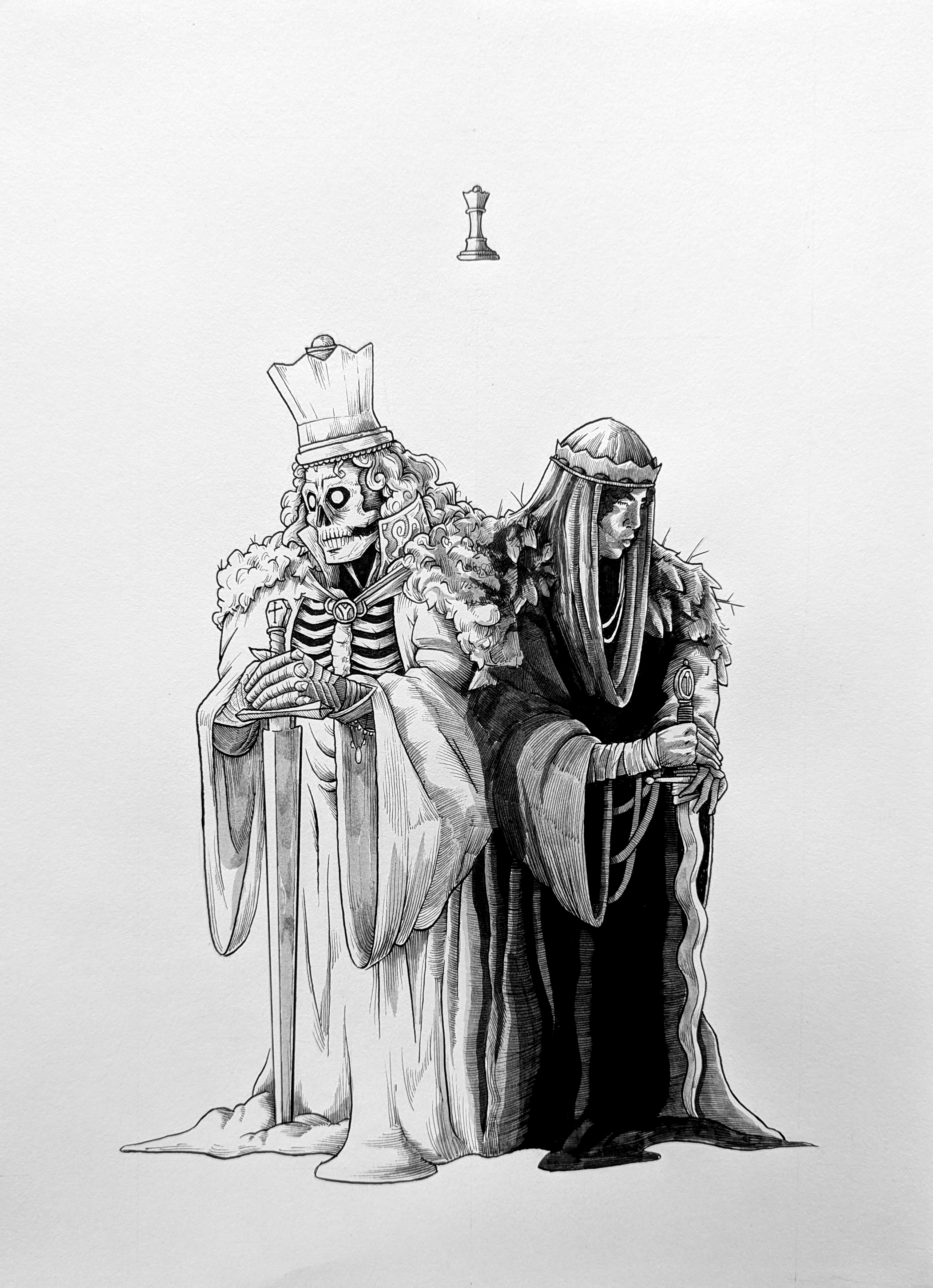 All ink originals drawn 2023 and later were drawn while I was wearing a cotton glove. Pre-2023 art may eventually stain from touching my oily hand – sorry!